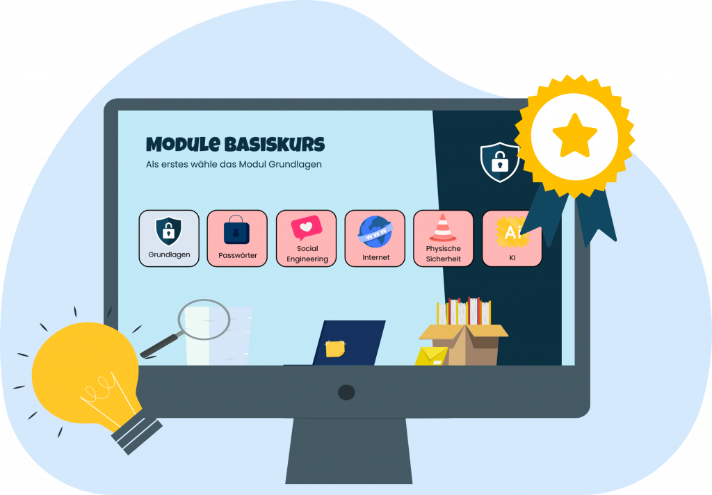 Unser kostenloser Basiskurs zur Awareness über IT-Sicherheit ist SCORM-kompatibel und kann problemlos auf unserer Website heruntergeladen werden. Der Kurs vermittelt essentielle Grundkenntnisse und sensibilisiert Mitarbeitende für Cyber-Risiken, ohne zusätzliche Kosten für Ihr Unternehmen zu verursachen.